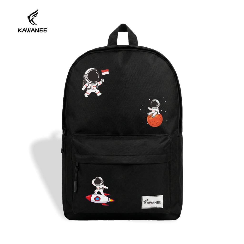 Tas ransel serbaguna dengan desain simple dan motif Astrounot, cocok dipakai untuk kuliah, kerja, atau aktivitas harian.