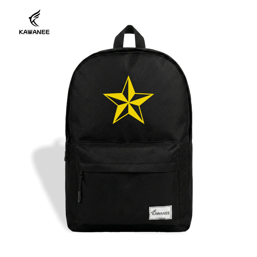 Tas ransel serbaguna dengan desain simple dan motif bintang emas, cocok dipakai untuk kuliah, kerja, atau aktivitas harian.